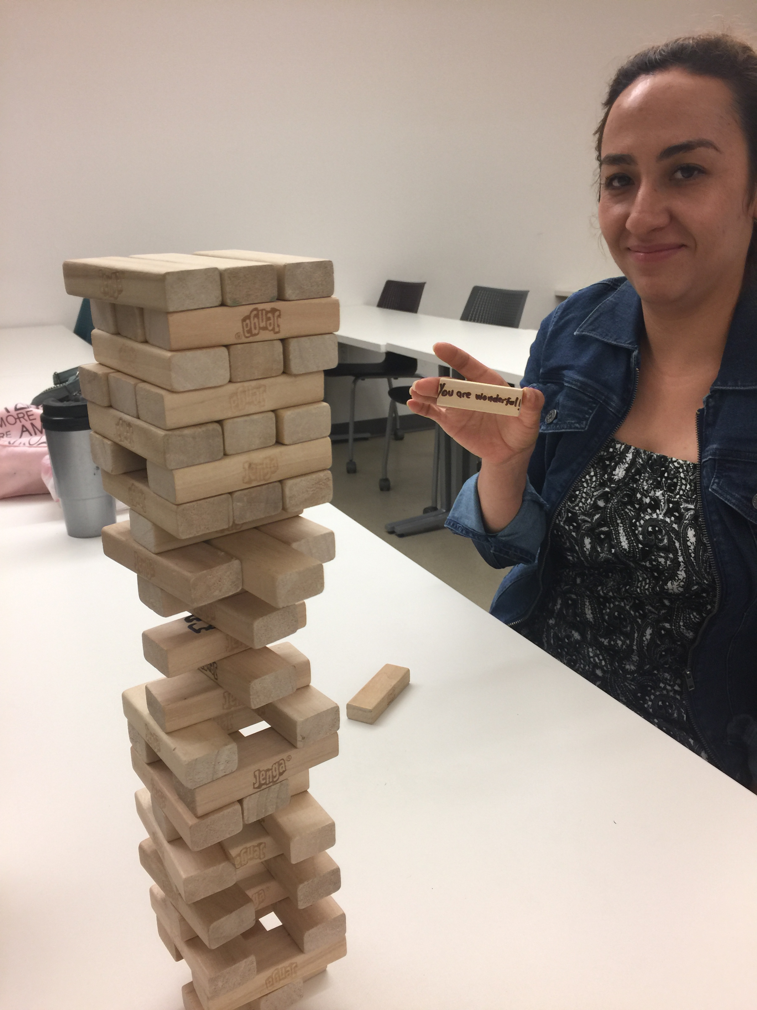 So one day I looked at an old Jenga game I had collecting dust on the game shelf and decided to replicate this game with my students, but in a more English-friendly way.